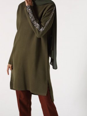 Allday Haki Kolları Pul Şerit Triko Tunik
