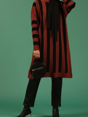 Allday Kiremit Çizgili Triko Tunik