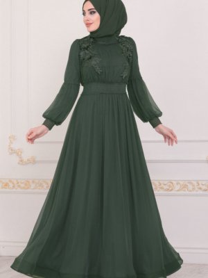 Neva Style Yeşil Yaprak Detaylı Abiye Elbise
