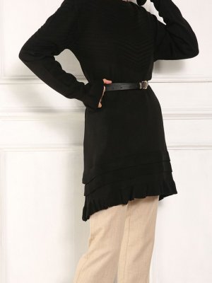 Allday Siyah Triko Eteği Fırfır Salaş Tunik