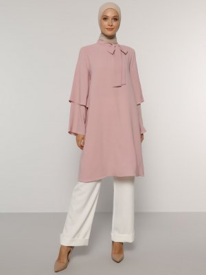 Refka Pembe Derin Yakası Bağlamalı Tunik