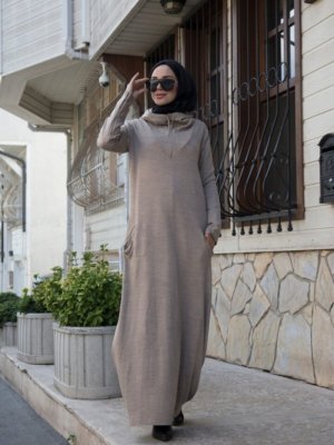 Ns Suud Vizon Kapüşonu Simli Triko Elbise