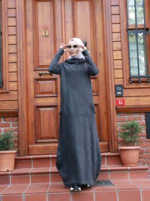 Ns Suud Antrasit Kapüşonu Simli Triko Elbise
