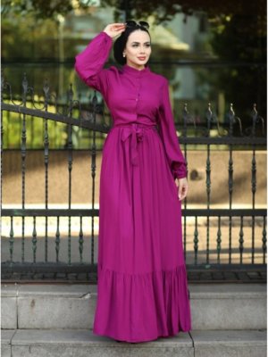 Ns Suud Fuşya Düğmeli Joker Elbise