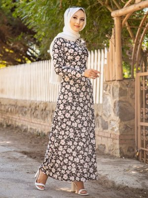 Tofisa Siyah Çiçek Desenli Elbise