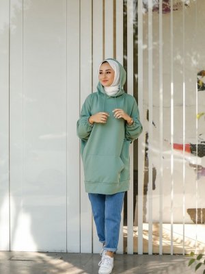 Elbica Mint Kapüşonlu Kanguru Cep Sweatshirt