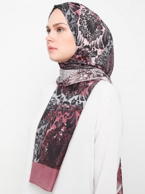 Renkli Butik Eşarp Gül Kurusu Desenli Pamuk Şal