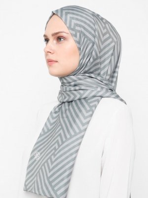 Renkli Butik Eşarp Gri Desenli Pamuk Şal