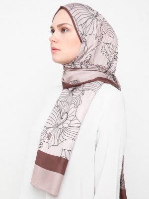 Renkli Butik Eşarp Açık Vizon Desenli Pamuk Şal
