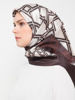 Renkli Butik Eşarp Krem Dijital Tafta Eşarp