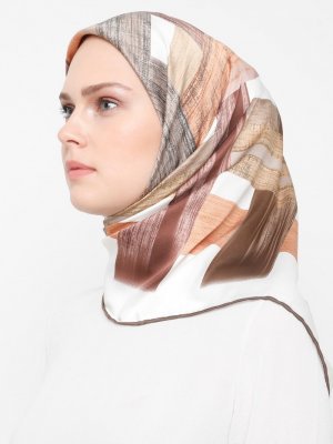Gülsoy Krem Kahverengi Hasır Desenli Rayon Eşarp