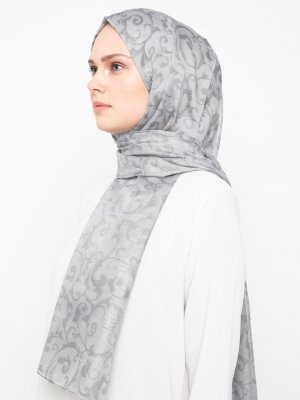 Renkli Butik Eşarp Gri Desenli Pamuk Şal