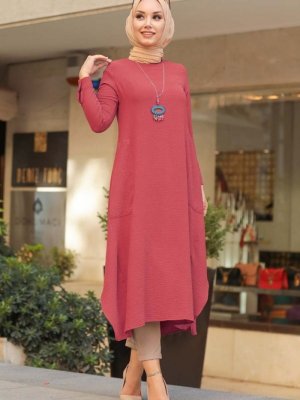 Neva Style Pembe Kolyeli Koyu Gül Kurusu Tunik