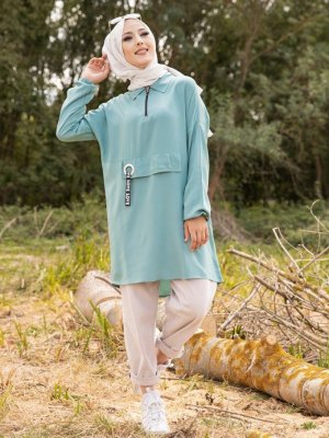 Tofisa Mint Yeşili Fermuarlı Tunik