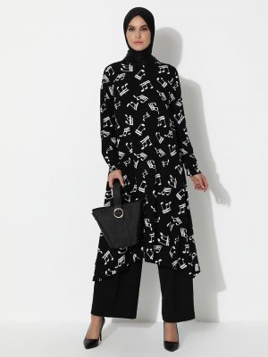 Topless Siyah Desenli Tunik