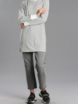 Allday Beyaz Çizgili Nakışlı Sweatshirt