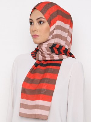 Burden İpek Taba Çizgili Desen Şifon Şal