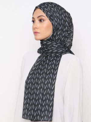 Burden İpek Siyah Kazayağı Desen Şifon Şal
