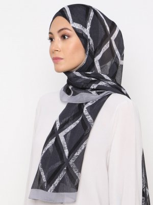 Burden İpek Koyu Gri Natural Kareli Şal