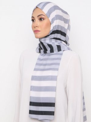 Burden İpek Beyaz Çizgili Desen Şifon Şal
