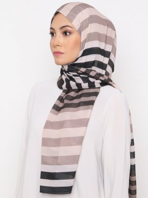 Burden İpek Taş Çizgili Desen Şifon Şal