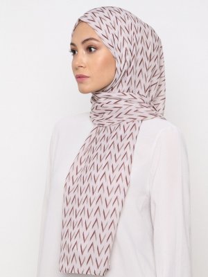 Burden İpek Krem Kazayağı Desen Şifon Şal