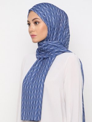 Burden İpek İndigo Kazayağı Desen Şifon Şal