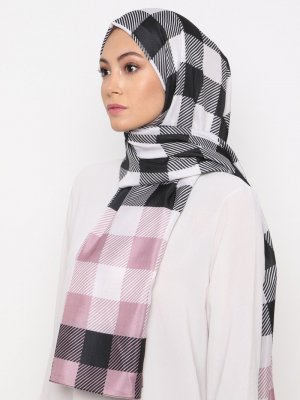 Burden İpek Pudra Coton Ekose Desen Şal