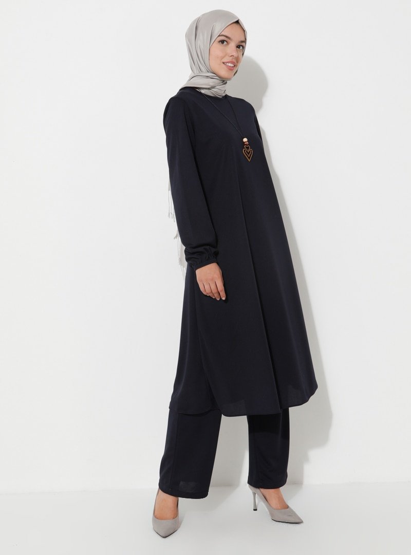 ECESUN Lacivert Kolye Detaylı Tunik