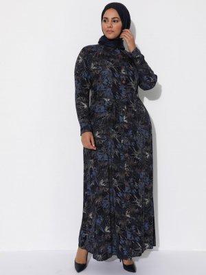 Ferace İndigo Mavi Desenli Elbise