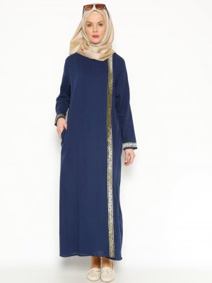 Çıkrıkçı Gold Lacivert Şile Bezi Varaklı Ferace