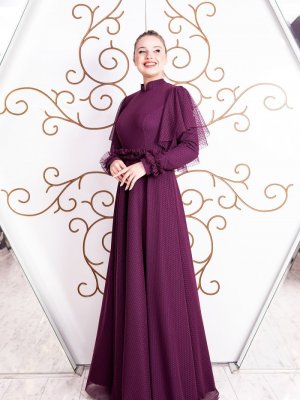 Esma Karadağ Mor Büzgü Detay Dantel Elbise