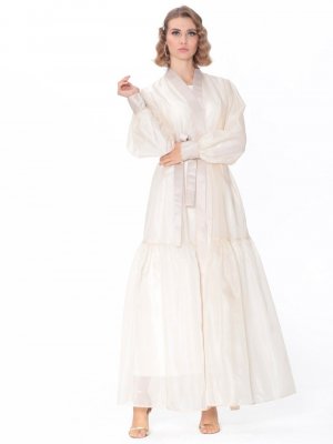 AL SHEIKHA Bej Organze Manşet Detaylı Abaya
