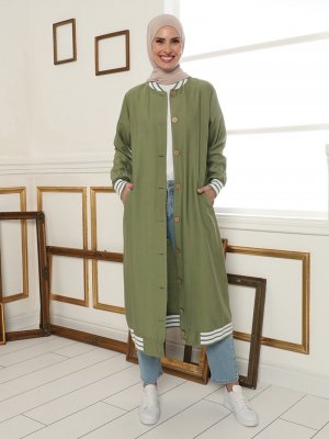Tavin Haki Düğme Detaylı Cepli Spor Ferace