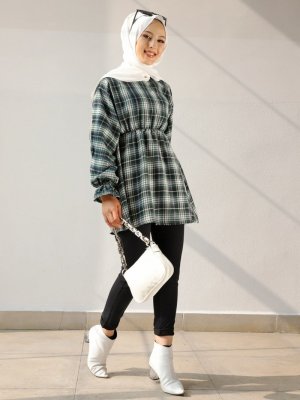 Tofisa Zümrüt Yeşili Siyah Yarasa Kol Tunik