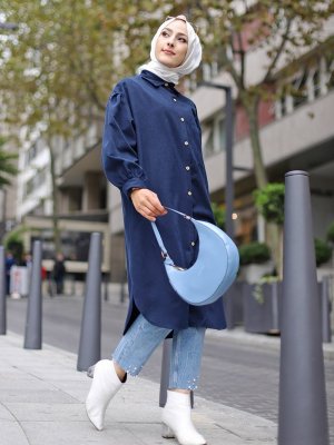 Tofisa Lacivert Asimetrik Kesim Tunik