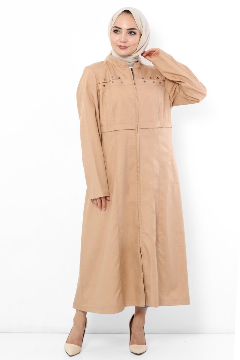 Tesettür Dünyası Somon Fermuarlı Büyük Beden Pardesü