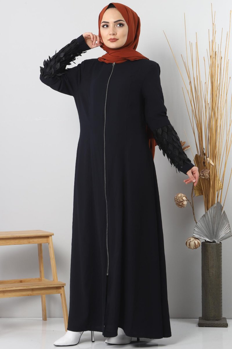 Tesettür Dünyası Lacivert Kol Detaylı Ferace