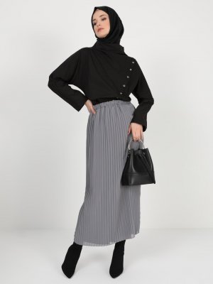 BÜRÜN Koyu Gri Beli Lastikli Etek