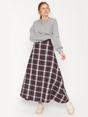 Ceylan Otantik Bordo Ekoseli Kloş Etek