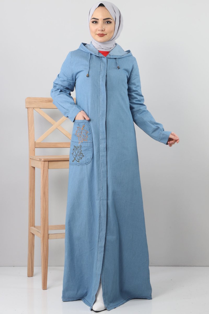 Tesettür Dünyası Açık Mavi Cebi Nakışlı Kot Kap