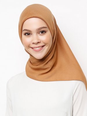 Burden İpek Açık Kahve Düz Pamuksu Eşarp
