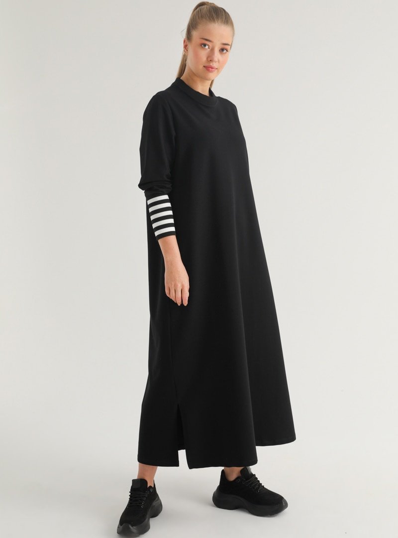 FLOWİST PLUS SİZE Siyah Ribana Detaylı Elbise