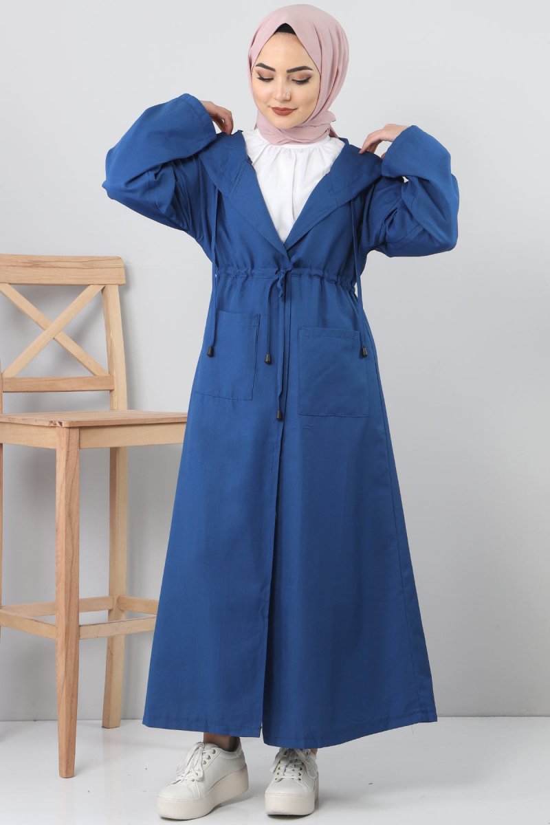 Tesettür Dünyası İndigo Kapüşonlu Uzun Kap