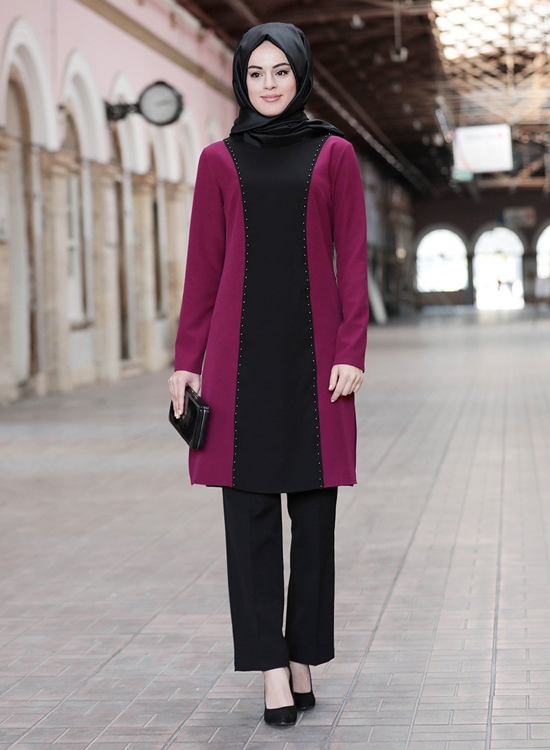 Mimelisa Fuşya İnci Tunik&Pantolon İkili Abiye Takım
