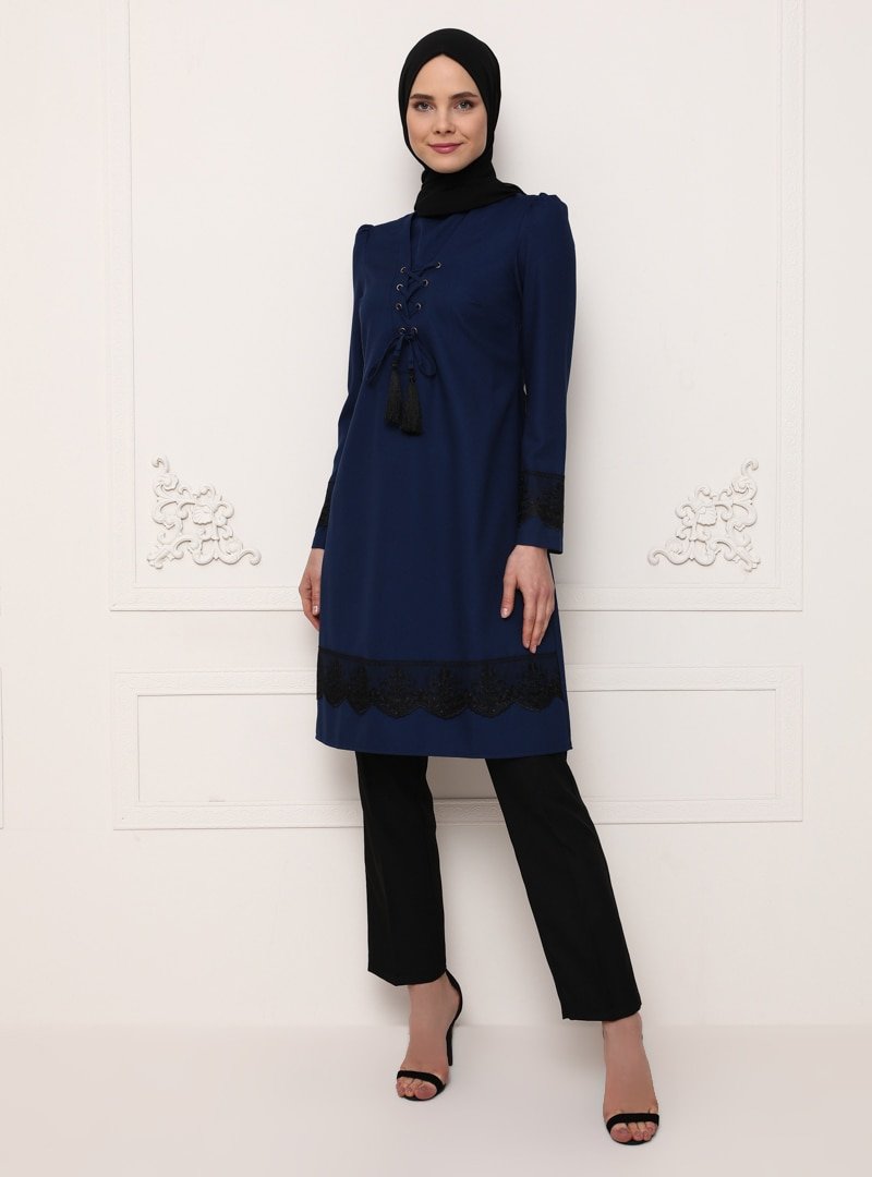 AYŞE MELEK TASARIM İndigo Tunik&Pantolon İkili Abiye Takım