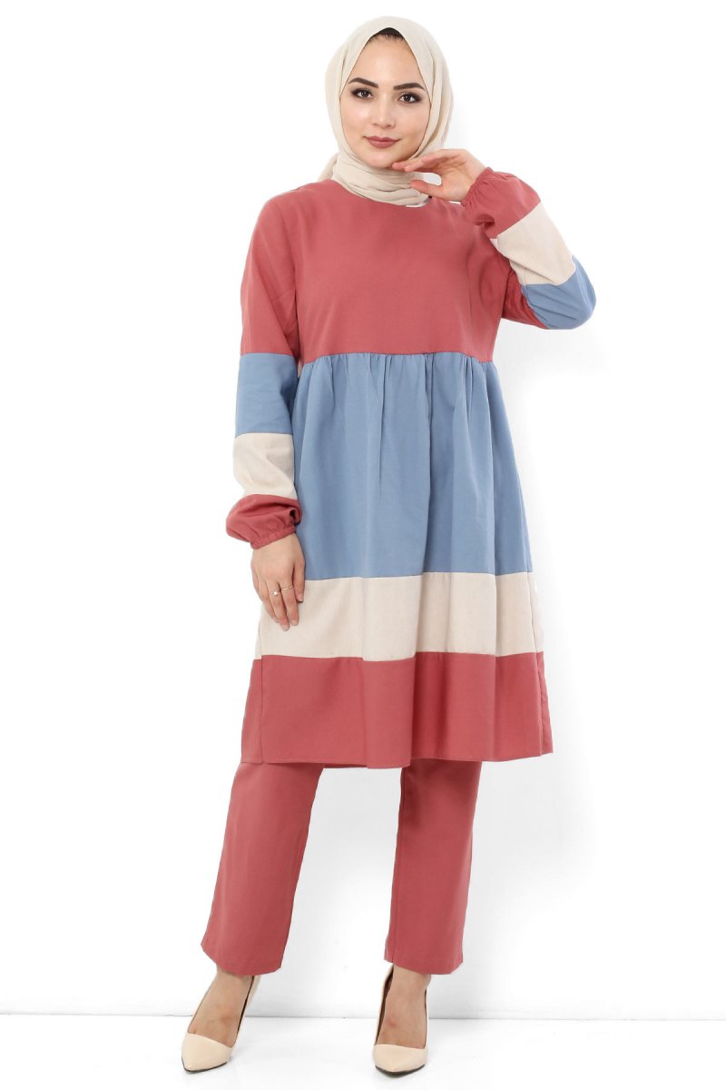 Tesettür Dünyası Nar Çiçeği Renkli İkili Takım