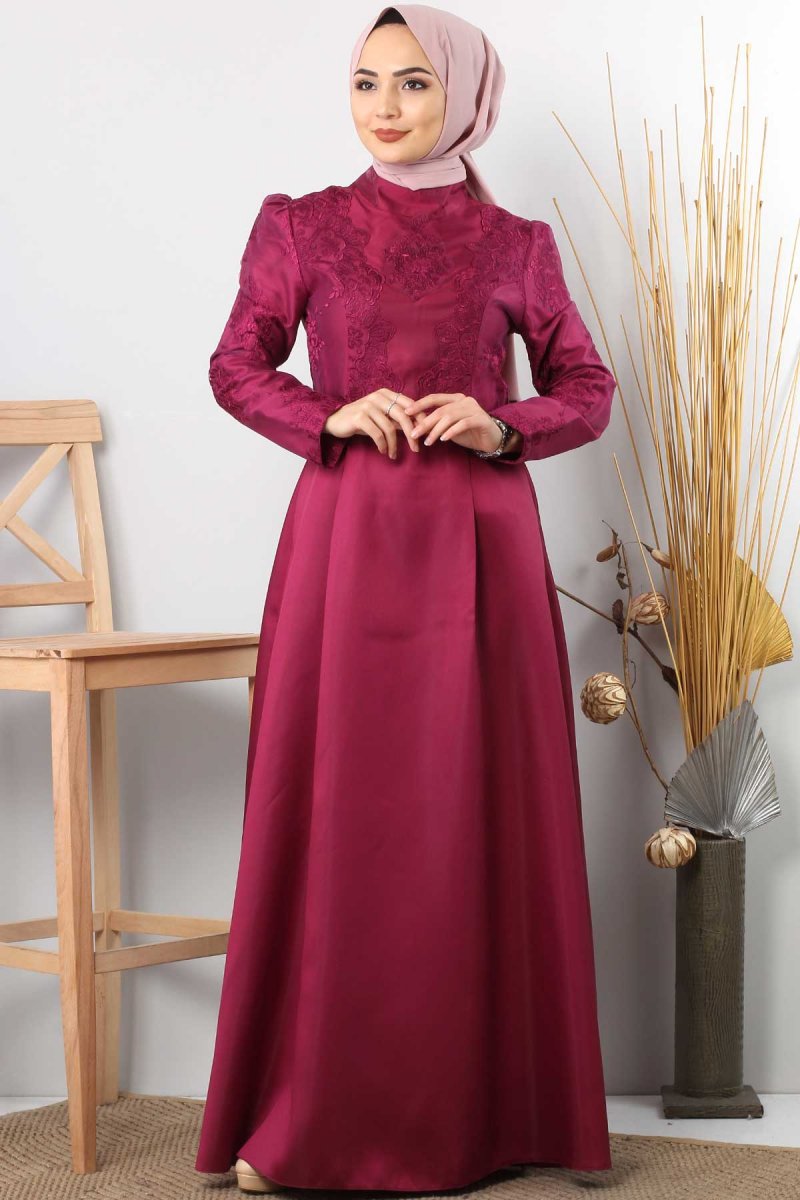 Tesettür Dünyası Mürdüm Sultan Abiye Elbise