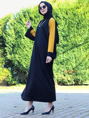 DUHA BY MELEK AYDIN Siyah Hardal Kolu Garnili Ferace