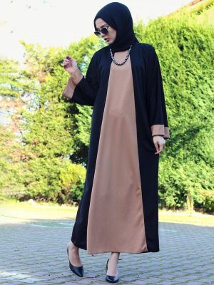 DUHA BY MELEK AYDIN Sütlü Kahve Siyah Önü Garnili Ferace